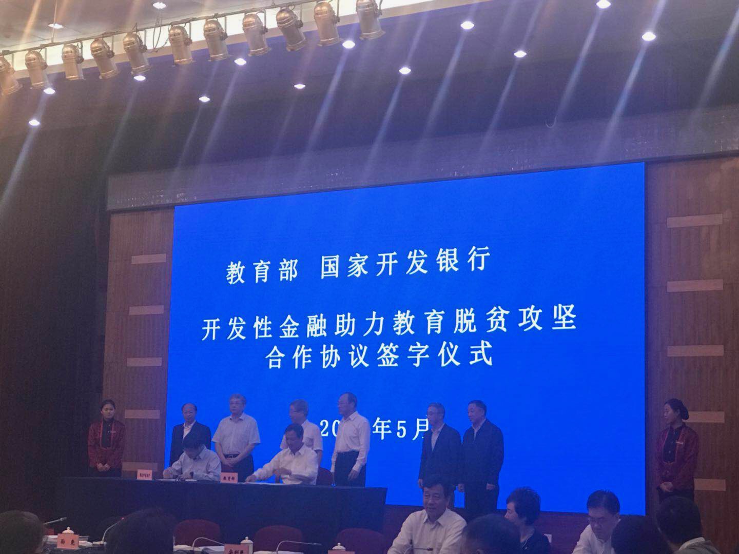 會(huì )上,教育部與國家開(kāi)發(fā)銀行簽訂了開(kāi)發(fā)性金融助力教育脫貧合作協(xié)議。國家開(kāi)發(fā)銀行將以此次與教育部簽訂合作協(xié)議為新起點(diǎn),進(jìn)一步拓展教育扶貧支持領(lǐng)域,全方位支持教育扶貧。